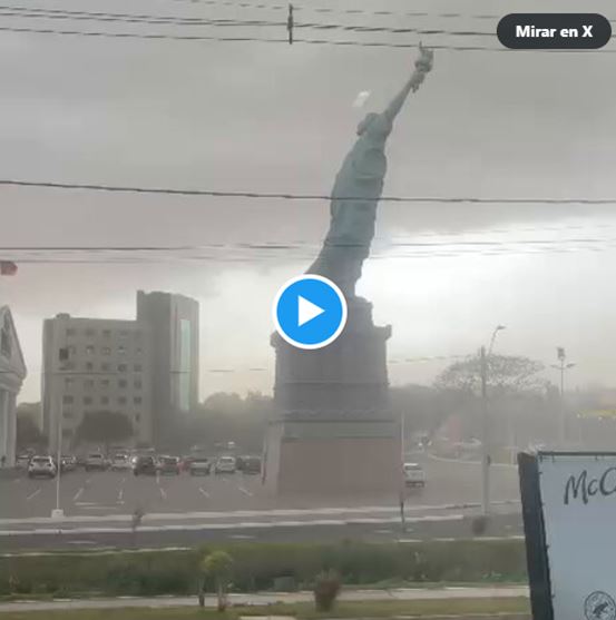 🌪️ Impactante: una réplica gigante de la Estatua de la Libertad fue derribada por un temporal en Brasil