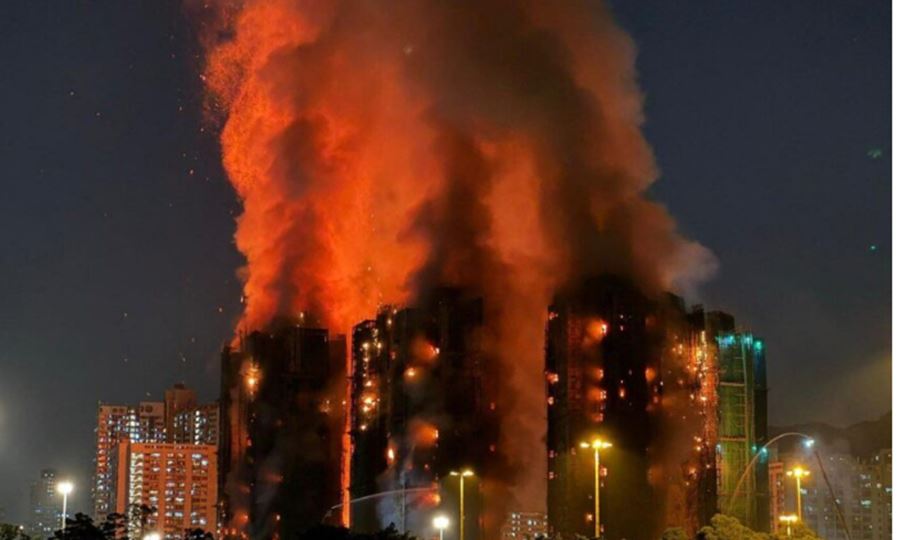 El fuego se originó el miércoles por la tarde en un andamio de bambú instalado en el exterior de una torre de 32 pisos, en el distrito de Tai Po. Desde allí, se propagó a siete de los ocho edificios del complejo, impulsado por la estructura de construcción y posibles ráfagas de viento.