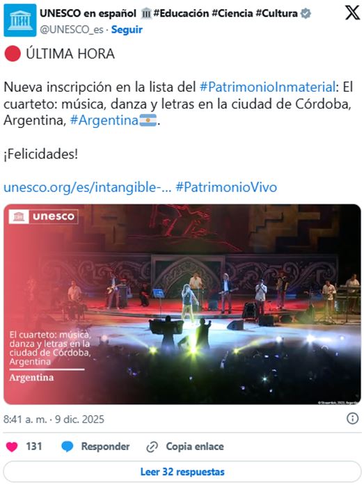 Héctor “Pichi” Campana, secretario de Fortalecimiento Vecinal, Cultura y Deportes de la Municipalidad de Córdoba, celebró la noticia y destacó que este logro “honra a todos los que hicieron del cuarteto un estilo de vida: cantantes, compositores, productores y familias enteras que crecieron con su ritmo incomparable”.