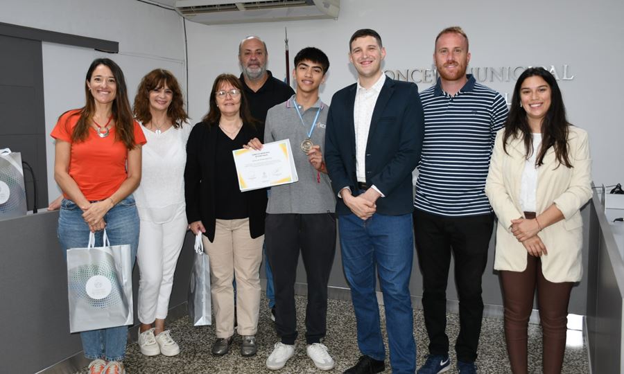 El Concejo Municipal reconoció oficialmente el extraordinario desempeño del estudiante Lucas Montini, quien se consagró con la Medalla de Oro en la prestigiosa Olimpíada Argentina de Química, desarrollada en Villa Giardino (Córdoba).