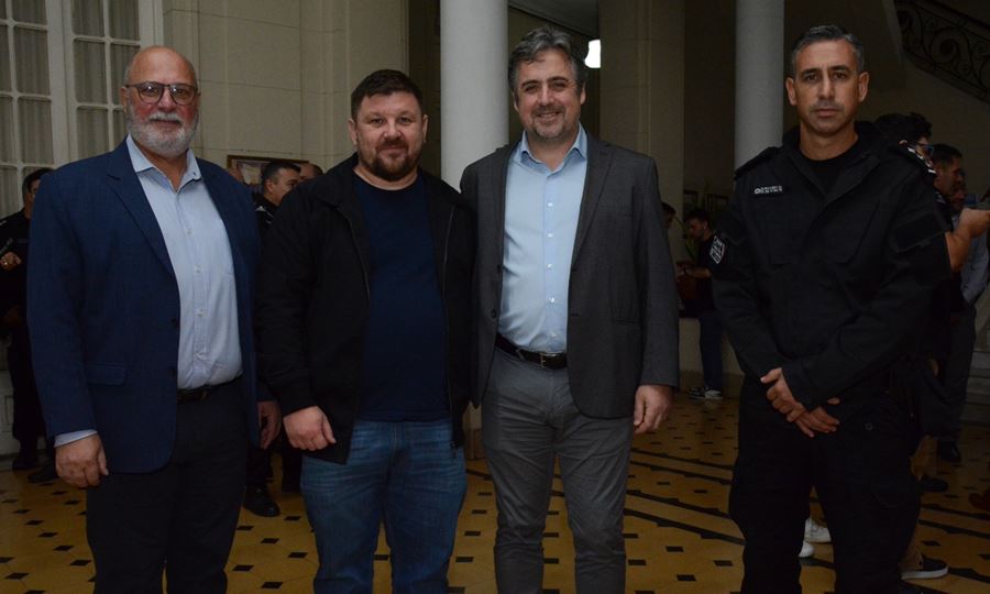 El intendente Pablo Pinotti, junto al subsecretario de la Agencia Municipal de Seguridad, Fabián Bongiovanni, estuvieron presentes en la ceremonia encabezada por el ministro de Justicia y Seguridad de Santa Fe, Pablo Cococcioni.