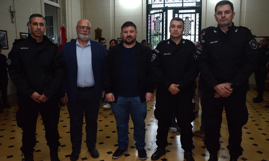 El intendente Pablo Pinotti, junto al subsecretario de la Agencia Municipal de Seguridad, Fabián Bongiovanni, estuvieron presentes en la ceremonia encabezada por el ministro de Justicia y Seguridad de Santa Fe, Pablo Cococcioni.