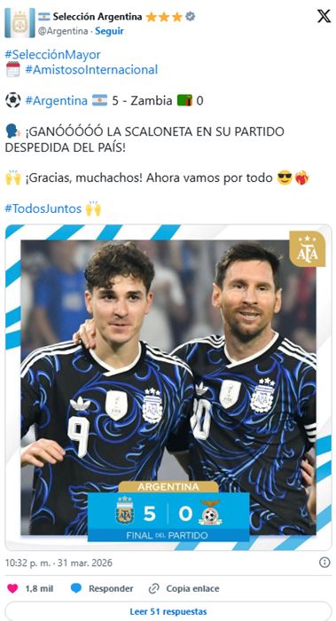 La Selección Argentina tuvo una noche ideal y aplastó a Selección de Zambia con una contundente goleada en La Bombonera, en lo que fue una de sus últimas presentaciones ante el público antes del Mundial 2026.