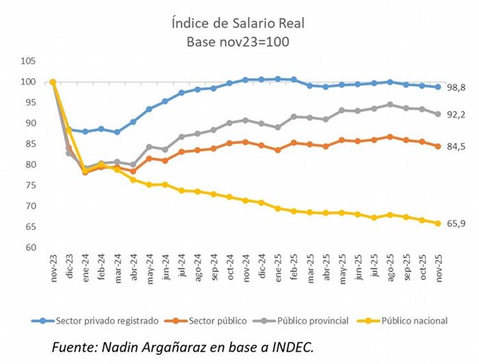 El Índice de Salarios del INDEC, con datos a noviembre de 2025, confirma la pérdida de poder adquisitivo: