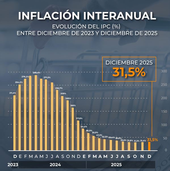 📉 Histórico: la inflación de 2025 cerró en 31,5% y marcó el nivel más bajo en ocho años
