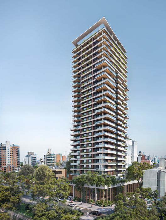 Con un basamento de cuatro niveles y una torre de 90 metros de altura, Veta del Paraná ofrecerá 28 pisos de amplios espacios residenciales concebidos para perdurar en el tiempo. Todas las unidades contarán con balcón-terraza y espacio para parrilla eléctrica, reforzando el concepto de confort y vida al aire libre.