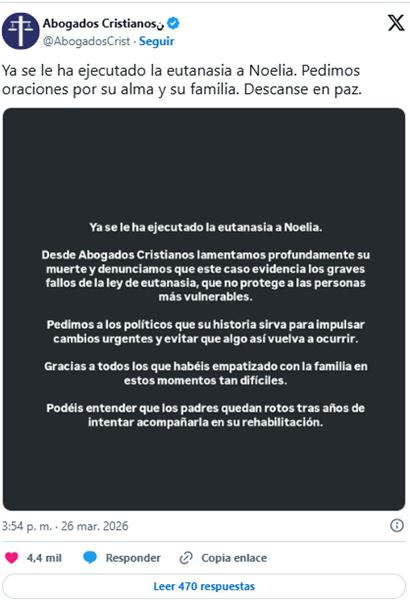 El caso de Noelia Castillo Ramos, la joven de 25 años que había solicitado la eutanasia, tuvo su desenlace este jueves y generó un fuerte impacto en España y Europa.