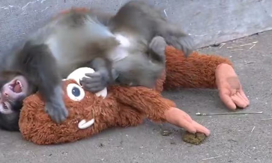 “Este peluche tiene el pelo relativamente largo y varios puntos por los que se puede agarrar fácilmente. Pensamos que su parecido con un mono podría ayudarlo a integrarse en la manada más adelante”, detalló el cuidador.