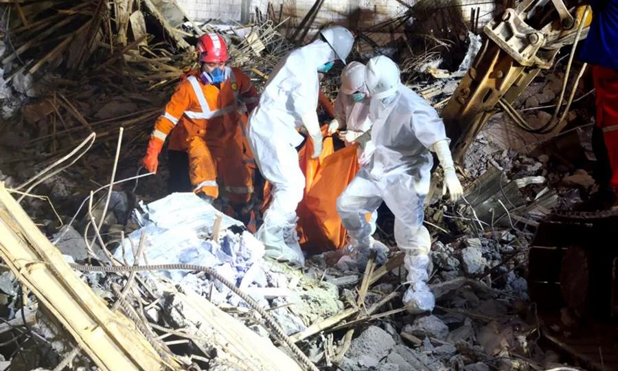 El edificio se derrumbó el 29 de septiembre mientras cientos de estudiantes estaban rezando en su interior y muchos quedaron atrapados bajo los escombros.