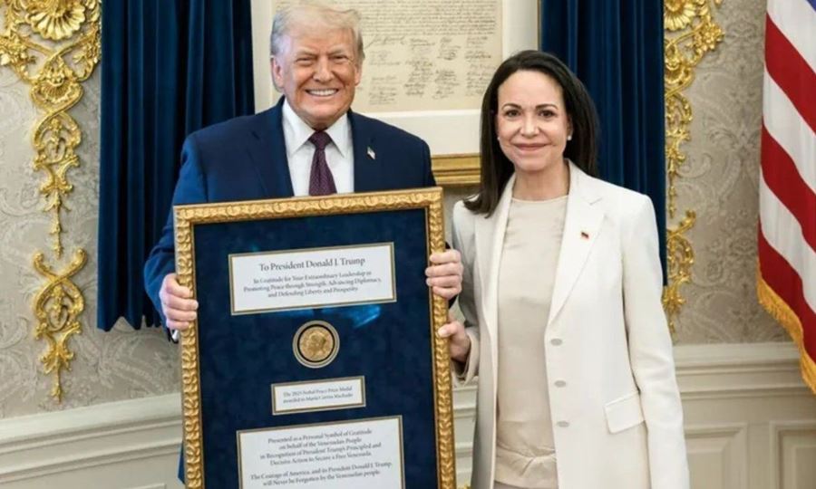 📌 “María me entregó su Premio Nobel de la Paz por el trabajo que he realizado”, escribió Trump, destacando a Machado como “una mujer maravillosa que ha pasado por mucho”.