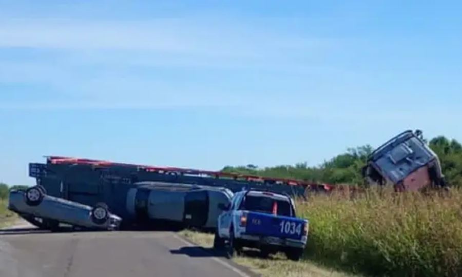 Un impactante siniestro vial se registró este domingo por la mañana en la provincia de Entre Ríos, cuando un camión de origen brasileño que transportaba vehículos volcó y dejó parte de su carga sobre la calzada.