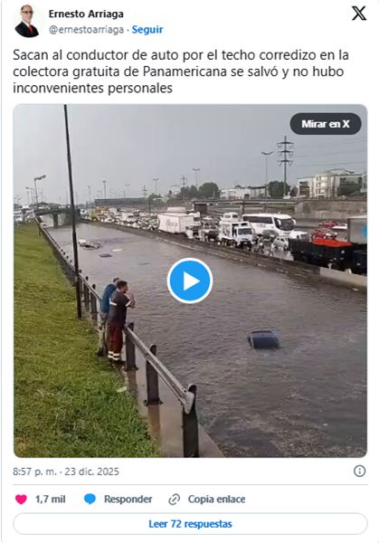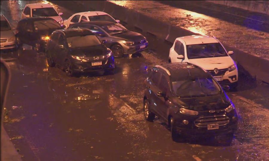 En cuestión de minutos, la intensa lluvia colapsó la traza a la altura del kilómetro 19, en la intersección con Thames, sentido a Capital Federal. El agua cubrió gran parte de la calzada, obligando a decenas de personas a abandonar sus autos para ponerse a salvo.