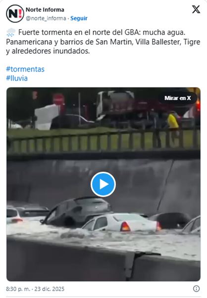 Un violento temporal azotó este jueves al Área Metropolitana de Buenos Aires (AMBA) y dejó una postal alarmante: la Panamericana completamente inundada, vehículos atrapados y conductores escapando como podían.