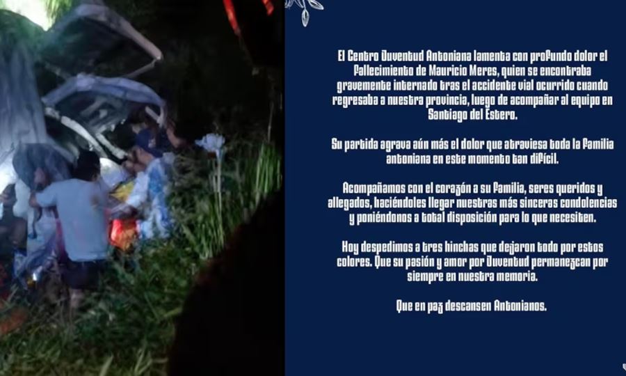 Una profunda tristeza atraviesa al fútbol del ascenso tras un fatal accidente vial que terminó con la vida de tres simpatizantes de Juventud Antoniana.