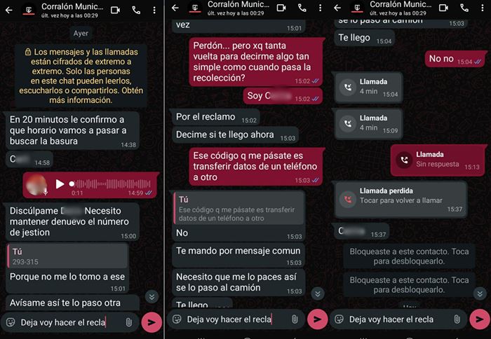 Sin embargo, el intercambio tomó un giro llamativo cuando desde esa misma cuenta le solicitaron un código que, supuestamente, le iba a llegar al vecino para poder “gestionar el reclamo”.
