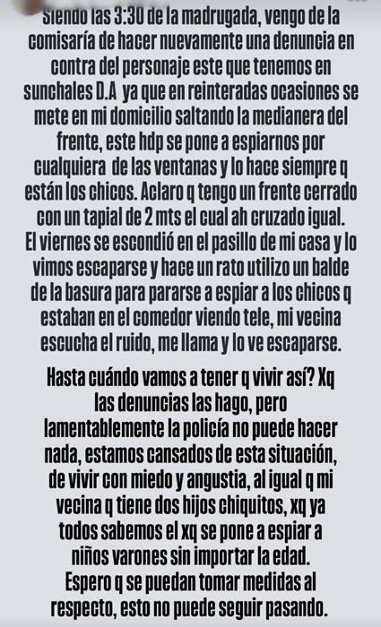 La denunciante señaló además que no sería la primera vez que se registran situaciones similares, por lo que evalúa reforzar las medidas de seguridad en su hogar para prevenir nuevos episodios.