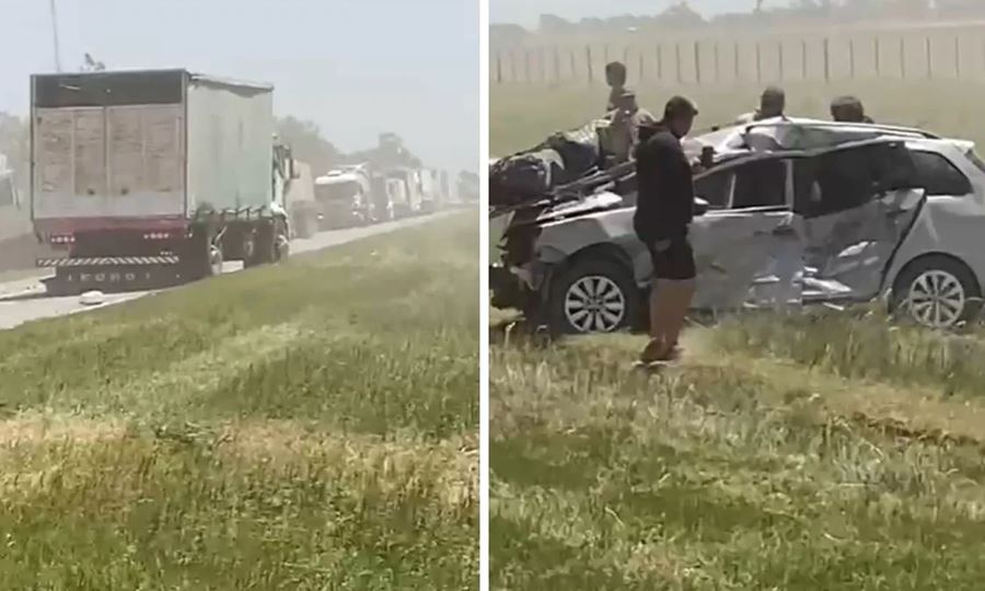 Ruta Nacional 34: Fuerte accidente auto y tres camiones chocaron en medio de una tormenta de tierra
