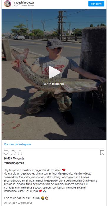 El protagonista de la captura, conocido en redes como “@trabachinopesca”, no ocultó su emoción y describió el momento con una frase que lo resume todo: “¡El surubí de mi vida!”.