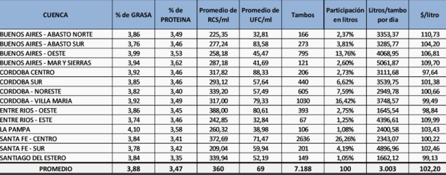 Cierto es que hay muchos parámetros que influyen en la determinación de los precios, dentro de la relación productor-industria. Pero la calidad y los volúmenes entregados juegan su partido. El precio más alto en la provincia de Buenos Aires se paga en la cuenca Mar y Sierras, donde los tambos tienen una producción diaria promedio de 5.061 litros.