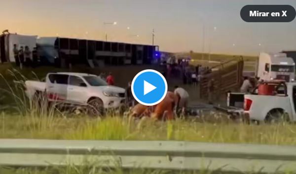Un accidente sobre la autopista Rosario–Córdoba generó momentos de tensión cuando un camión jaula que transportaba vacas volcó, dejando decenas de animales dispersos y provocando que varias personas intentaran faenar a los animales heridos o muertos en el lugar.