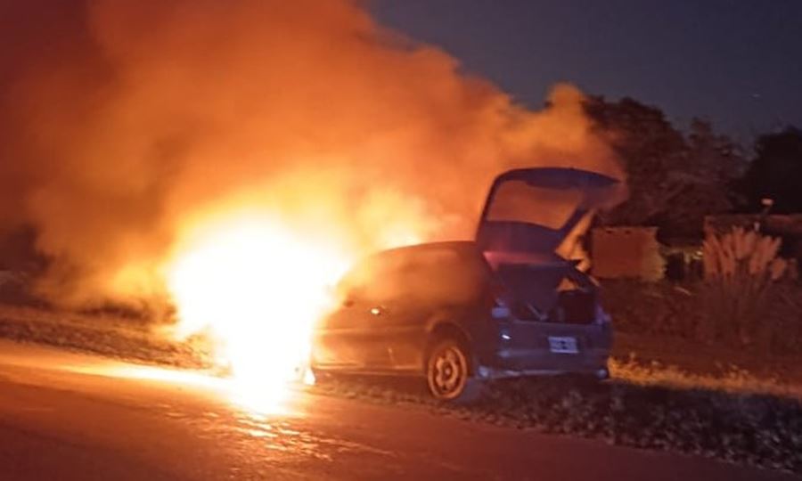 🔥 Auto incendiado en el acceso a Colonia Rosa