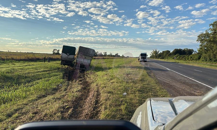 Un incidente vial se registró en la Ruta Nacional 34, a la altura del kilómetro 251, donde un camión Mercedes Benz 1633 cargado de fardos, terminó fuera de la calzada tras cruzar de carril.