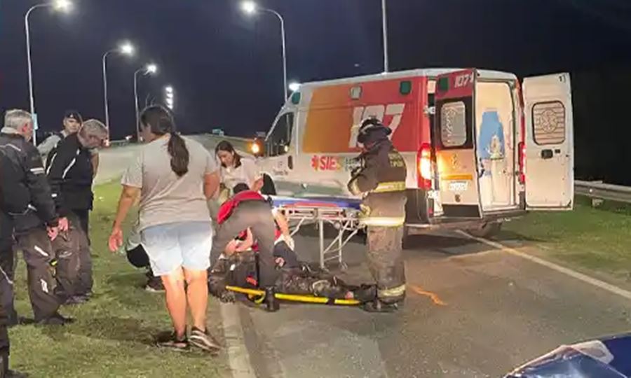 El hecho ocurrió alrededor de las 20:30 hs, a la altura de la intersección con calle Eduardo D’Agostino. Según los primeros reportes, el conductor viajaba en una moto KTM 390 y, tras el derrape, quedó consciente sobre el cantero central.