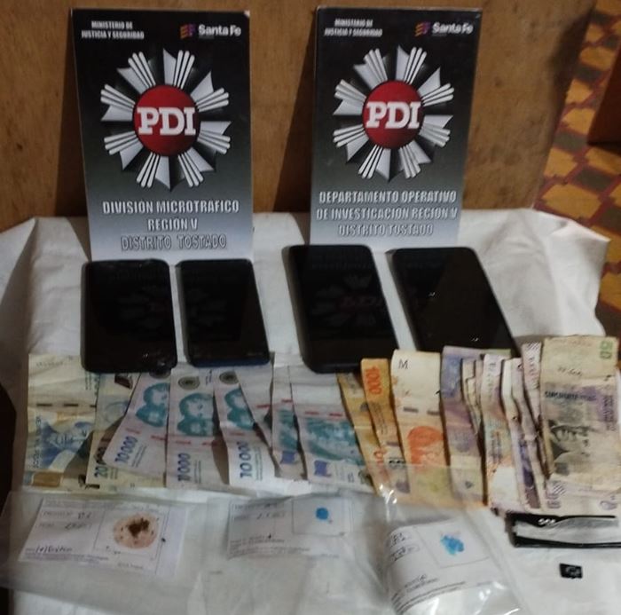 En los procedimientos secuestraron una escopeta con municiones con dos cartuchos, una pipa y 12,5 grs. de marihuana, cinco celulares; tres balanzas de precisión; una hoja con anotaciones, un chaleco balístico; dos envoltorios con cocaína, un cartucho calibre 22 y la suma de $753. 000.