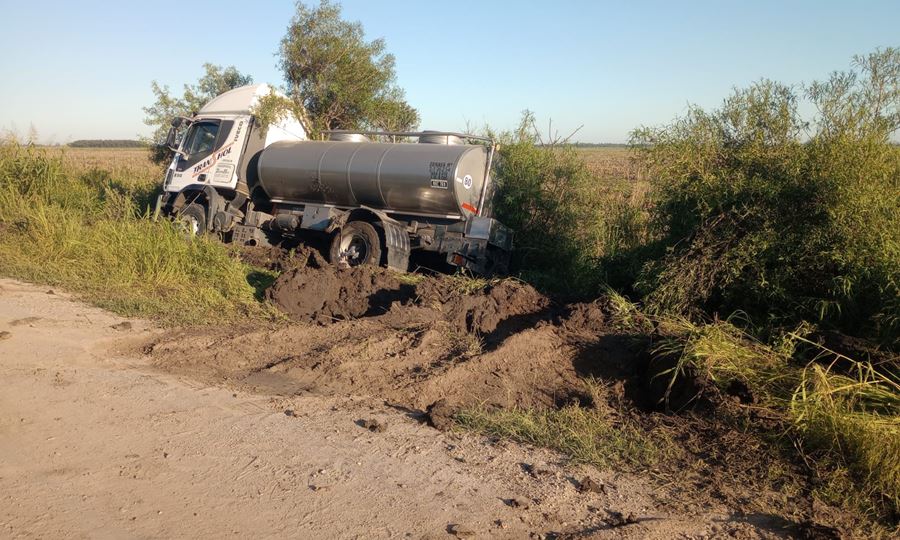 Un camión con tanque de la empresa Transhol protagonizó un incidente vial mientras circulaba por la Ruta Provincial 69 “S”, a unos 8 kilómetros al oeste del casco urbano de Palacios.