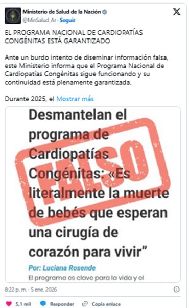 Bode recordó que la red nacional de cardiopatías congénitas está creada por ley, pero alertó sobre la decisión del Gobierno nacional de desplazar a profesionales especializados que integraban el sistema.