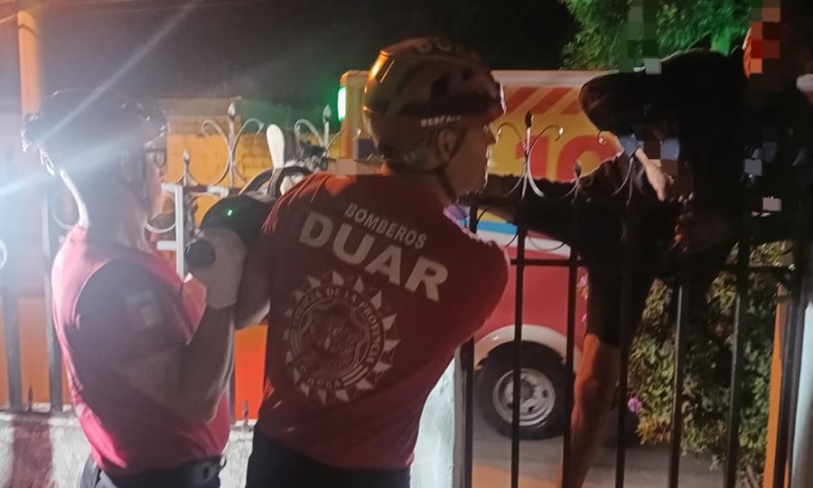 🚧 En medio del intento, el sujeto quedó con su pierna derecha atrapada entre las rejas del frente de la casa, lo que hizo imposible que pudiera escapar por sus propios medios. Ante esta situación, se solicitó la intervención del Departamento de Unidades de Alto Riesgo (DUAR).